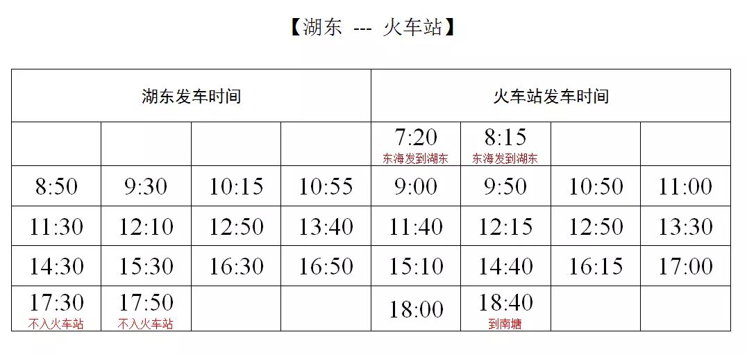 以上班次具体发车时间如下表所示,也可在本微信公众号输入“时间表”即时查询。
